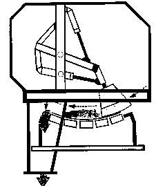 The pneumatic drive cylinder is connected to the cutter shaft through mounting brackets and pivots to lift the cutter back to sampling initiation position after